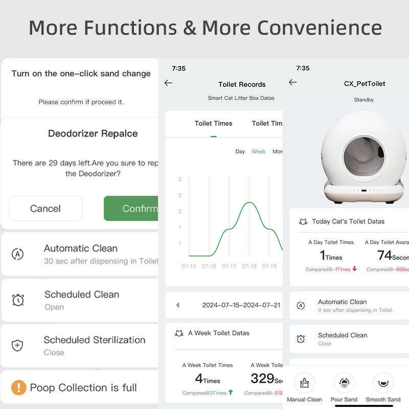Feature:Odor control, Comfortable, Easy to Clean, Large Capacity, Automatic Cleaning, open design, deodorizes, smart monitoring