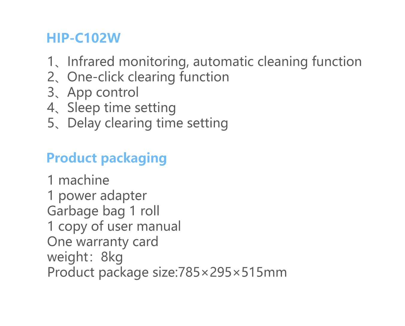 Feature:Easy Clean, automatic cleaning, Large Capacity, open design, COMFORTABLE